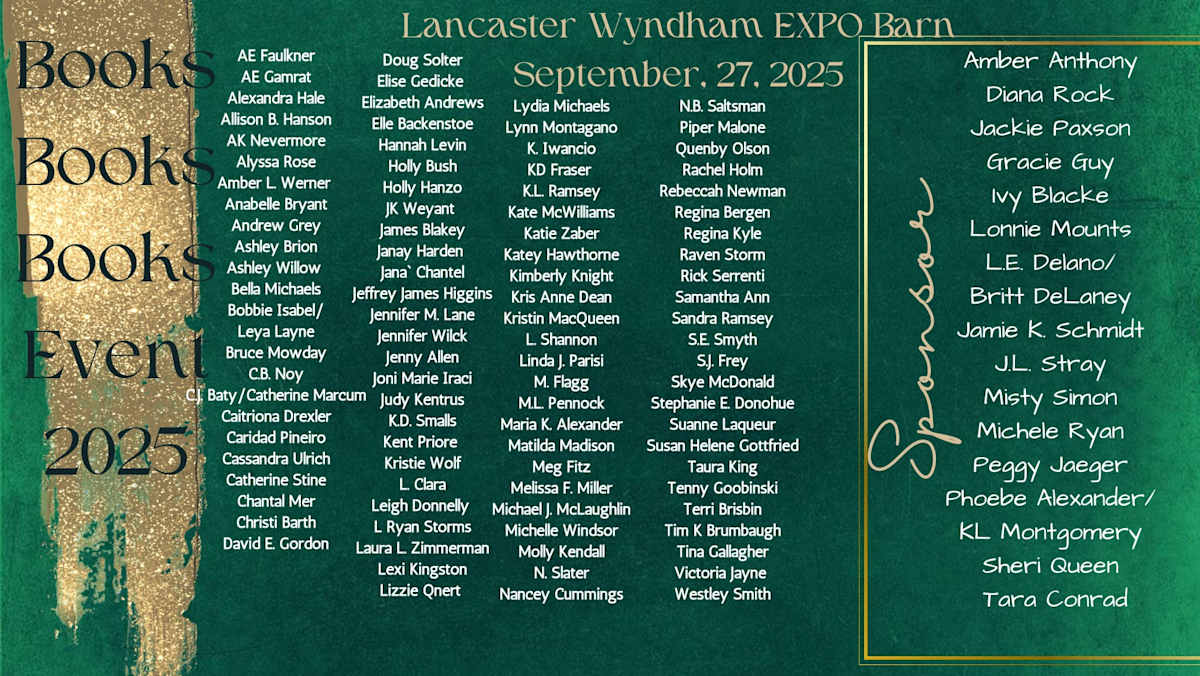 I will be signing at the 5th annual Books, Books, Books event on September 27th, 2025